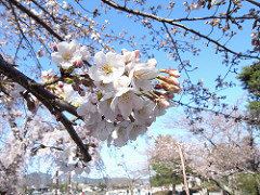 嵐山近辺も開花速報では「満開間近」のマークがついていたけど、まだ5~7分咲きかな。今週末から来週辺りが見ごろかも。